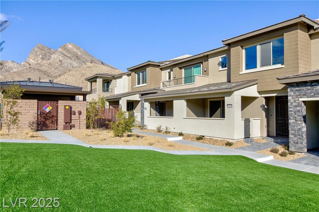 LOCATION LOCATION LOCATION! Nestled in the prestigious Monument at Reverance community in West Summerlin, this like-new 2024 home offers luxury and comfort with two spacious Primary Suites, each featuring large walk-in closets and dual sinks. This home faces a serene community grass area and is conveniently adjacent to the community pool. The home boasts premium upgrades, including luxury vinyl plank flooring upstairs and elegant tile flooring downstairs. Freshly painted throughout, the interior is modern and inviting. The chef-inspired kitchen is a standout, offering quartz countertops, white cabinetry with added hardware, and stainless steel appliances. The highlight of this home is the stunning rooftop deck, where you can enjoy breathtaking views of the iconic Las Vegas Strip and the surrounding mountains. This home combines exceptional design, an unbeatable location, and ultimate convenience in the heart of West Summerlin.